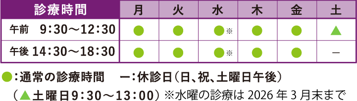 この他にも、治療中の方で些細なことでも症状に変化があった場合や、お薬の効き目に変化があった場合は、医師にご相談ください。気になる症状や治療についてご相談されたい方は、お気軽にお申し付けください。